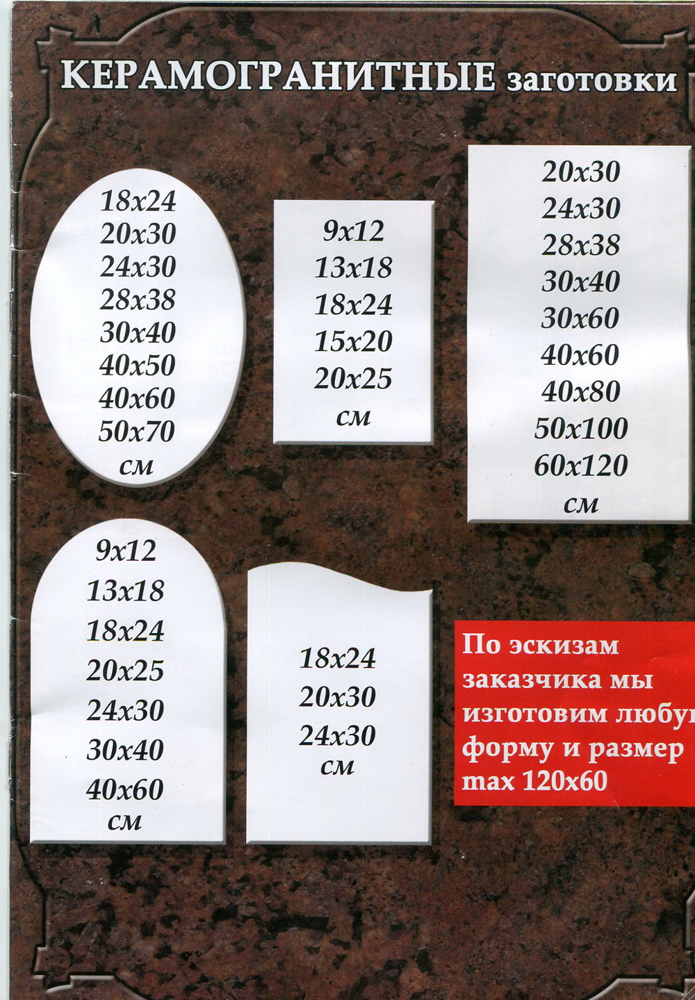 Компания Природный камень заботится о каждом своем клиенте и гарантирует индивидуальный подход к каждому заказу. Мы предлагаем широкий выбор каменных материалов, из которых можно выбрать подходящую основу для фотокерамики. Вы можете выбрать гранит, мрамор или другой камень, который будет соответствовать вашим предпочтениям и бюджету.