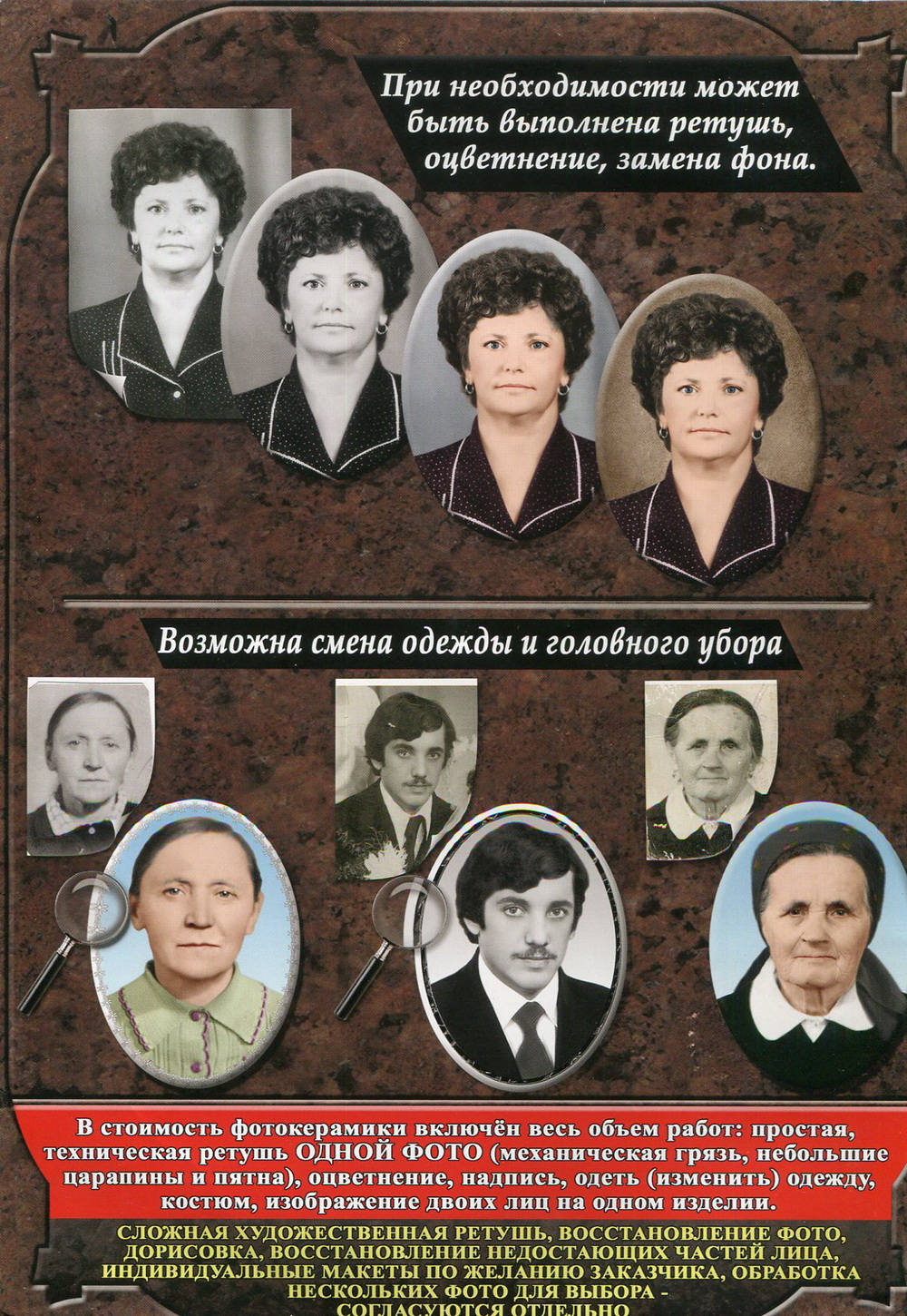 Компания Природный камень предлагает уникальную возможность заказать фотокерамику на памятник в Коломне. Этот товар является идеальным решением для тех, кто хочет сохранить память о своих близких и увековечить их образы на граните или мраморе.